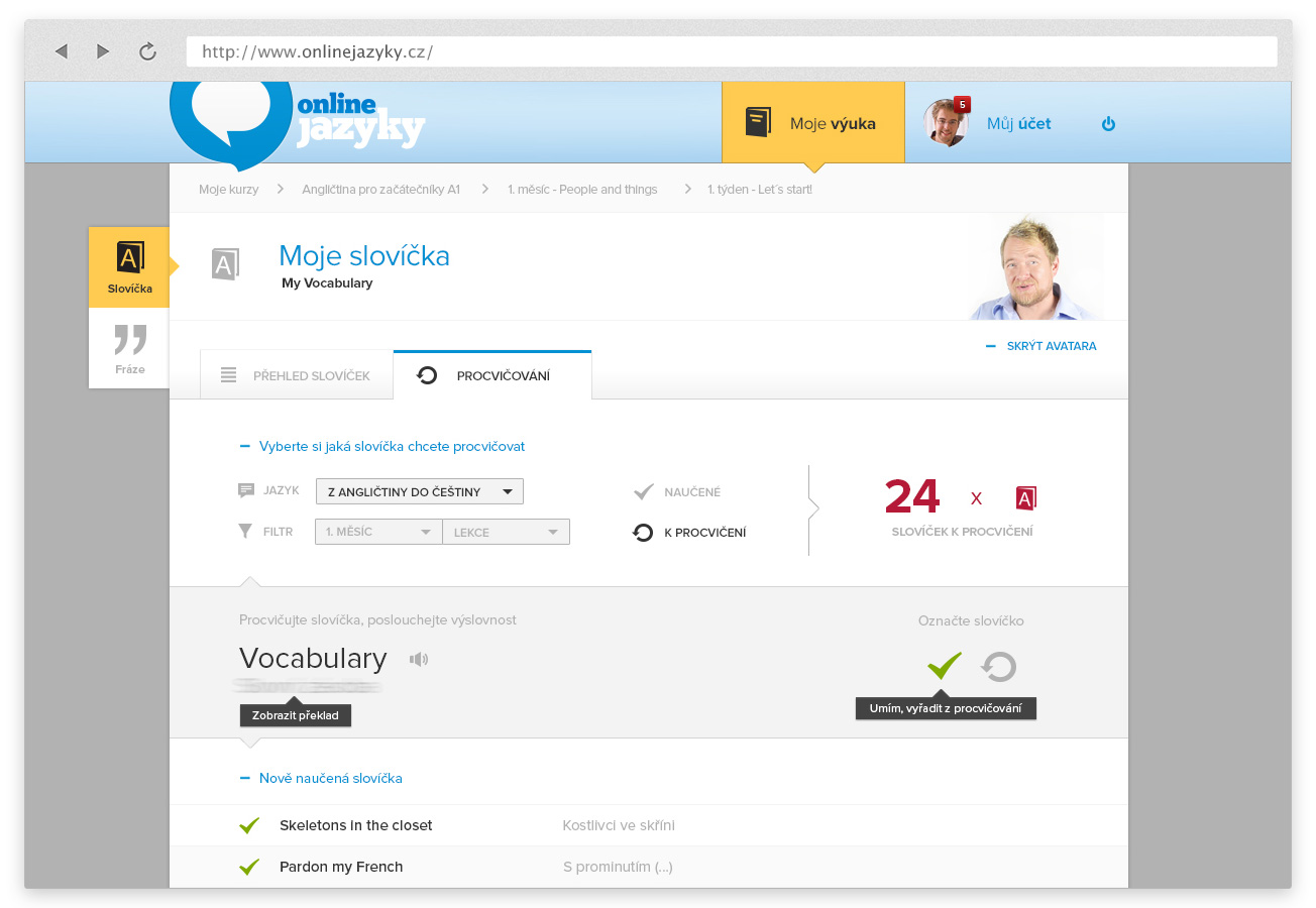 Učte se angličtinu kdykoliv a kdekoliv. Šetřete čas. Pokračujte přesně tam, kde jste naposled skončili. Udržujte kontakt s angličtinou každý den. Nemusíte dělat co vás nebaví. Co ale můžete, je naučit se anglicky. Konečně.