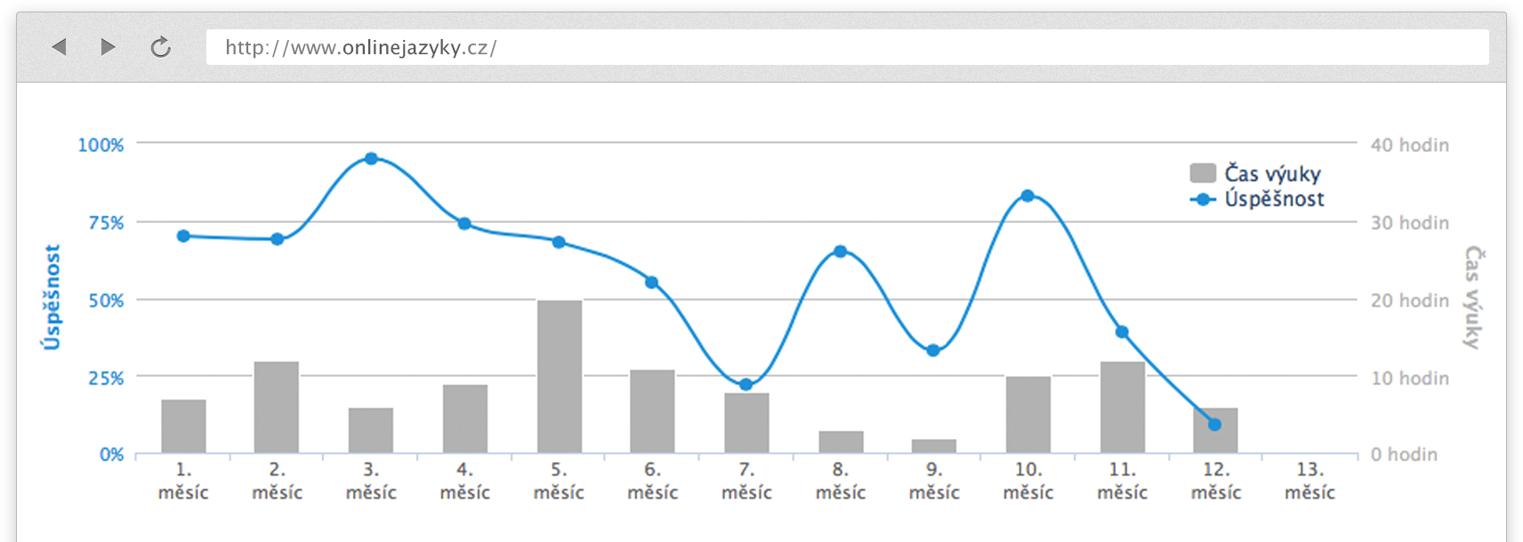 Klíčem k úspěchu je motivace. Motivujeme hravě. 15 druhů cvičení, motivační maily a videolektor, herní prvky, nástěnka s průběžnými výsledky v přehledných grafech. Povzbuzujeme, chválíme, bavíme vás. Učíte se mimoděk.